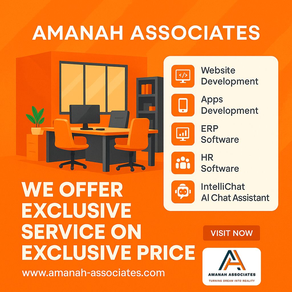 DigitalMarketing #WebDevelopment #AppsDevelopment #ERP #HRSoftware #AIChatbot #BusinessSolutions #AmanahAssociates #Bangladesh