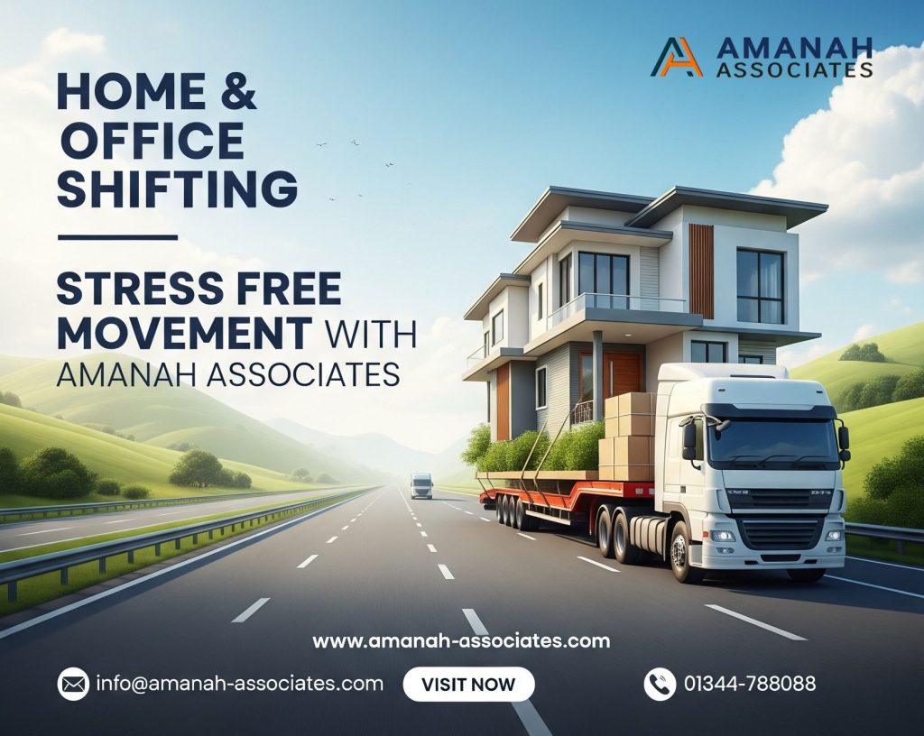 Amanah Associates নিয়ে এলো সারা বাংলাদেশে আপনার Home & Office Shifting – এর নির্ভরযোগ্য সমাধান। আমরা আপনার মূল্যবান জিনিসপত্রের নিরাপত্তা নিশ্চিত করি এবং সময়মতো আপনার গন্তব্যে পৌঁছে দেই।